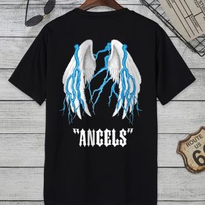 Men's Cartoon Wing Pattern T-shirt, Casual Solid Color Round Neck T-shirt Best-selling Product