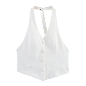 European And American Style Solid Color Design Slim White Bag Buckle Sleeveless Halter Top